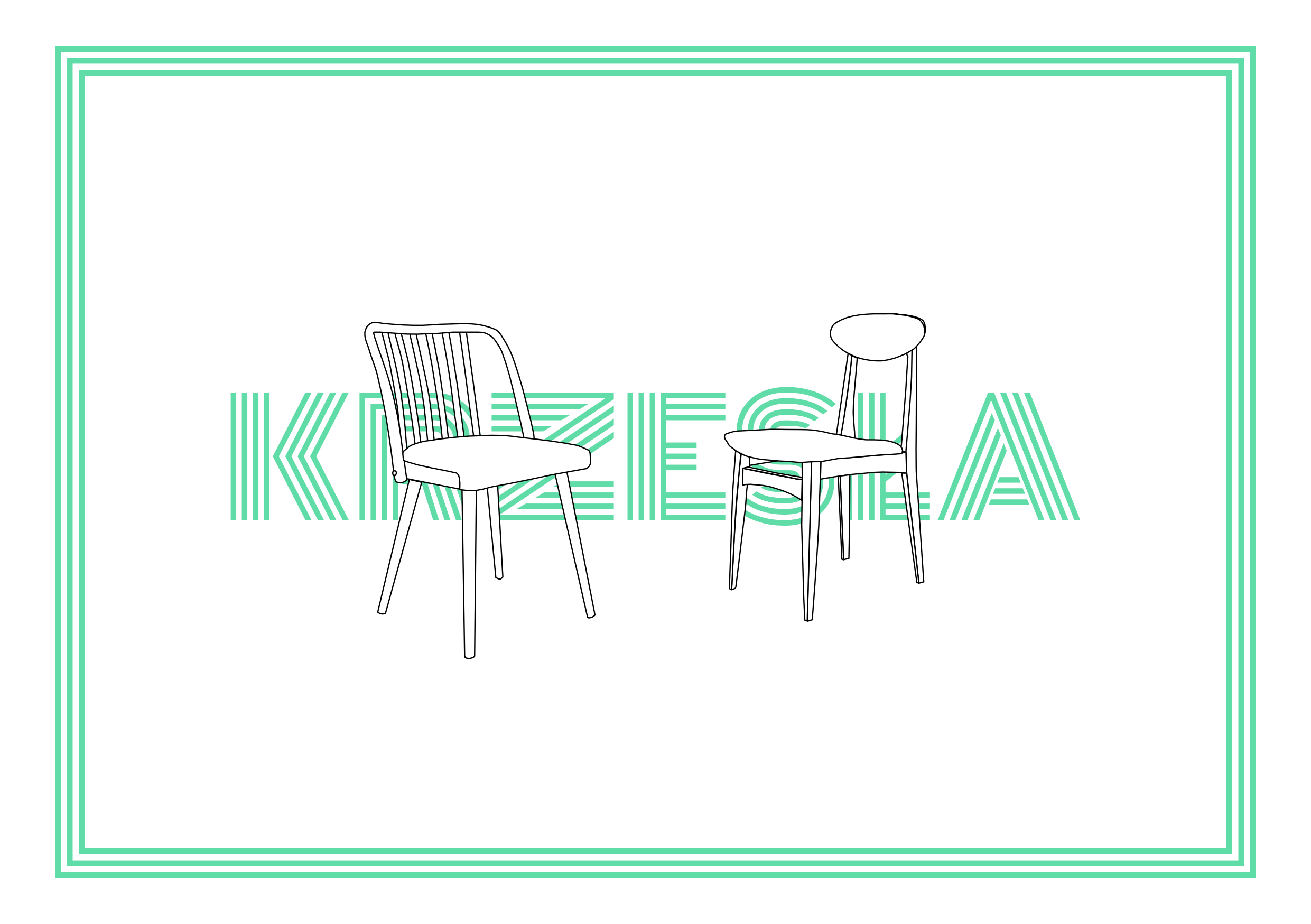 A minimalistic birthday card design with two of Asia's favorite things - retro chairs and mint green.