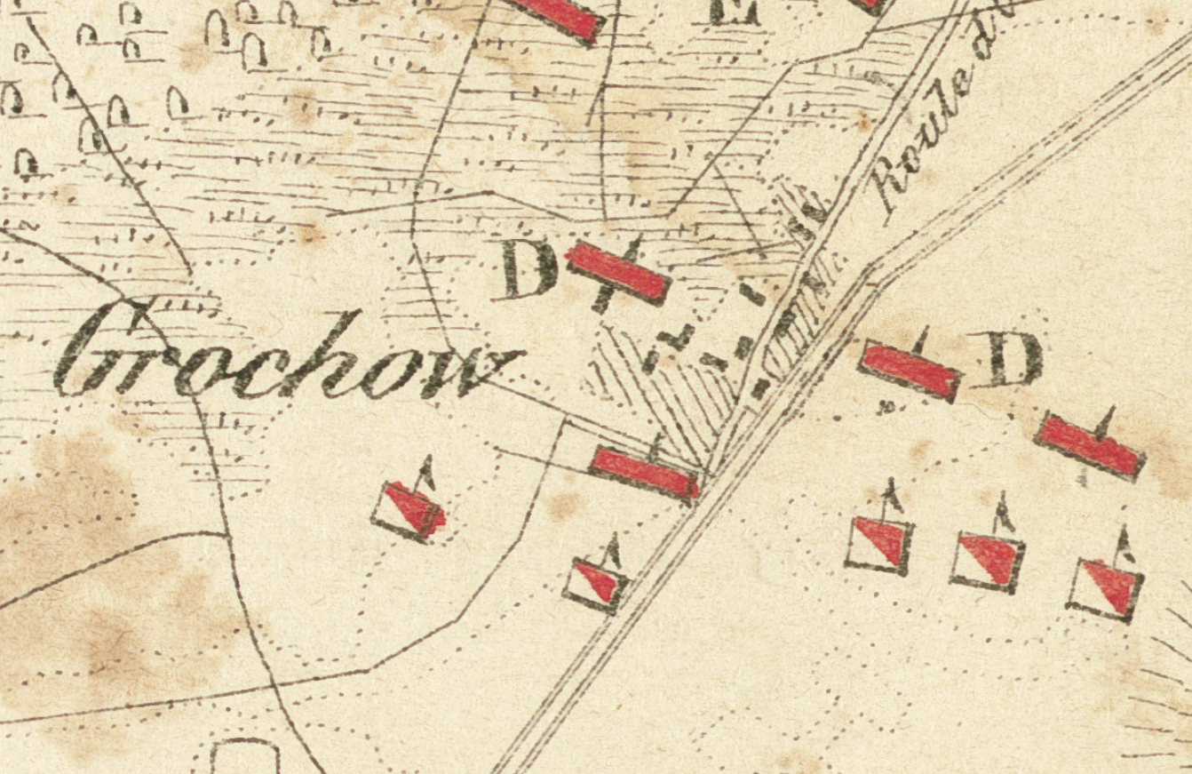 Road networks do not change much over time. Here, Grochowska street in south eastern Warsaw maintains its course since the early 1800's. The old map in this comparison is a depiction of the battle of Wawer, 1831.